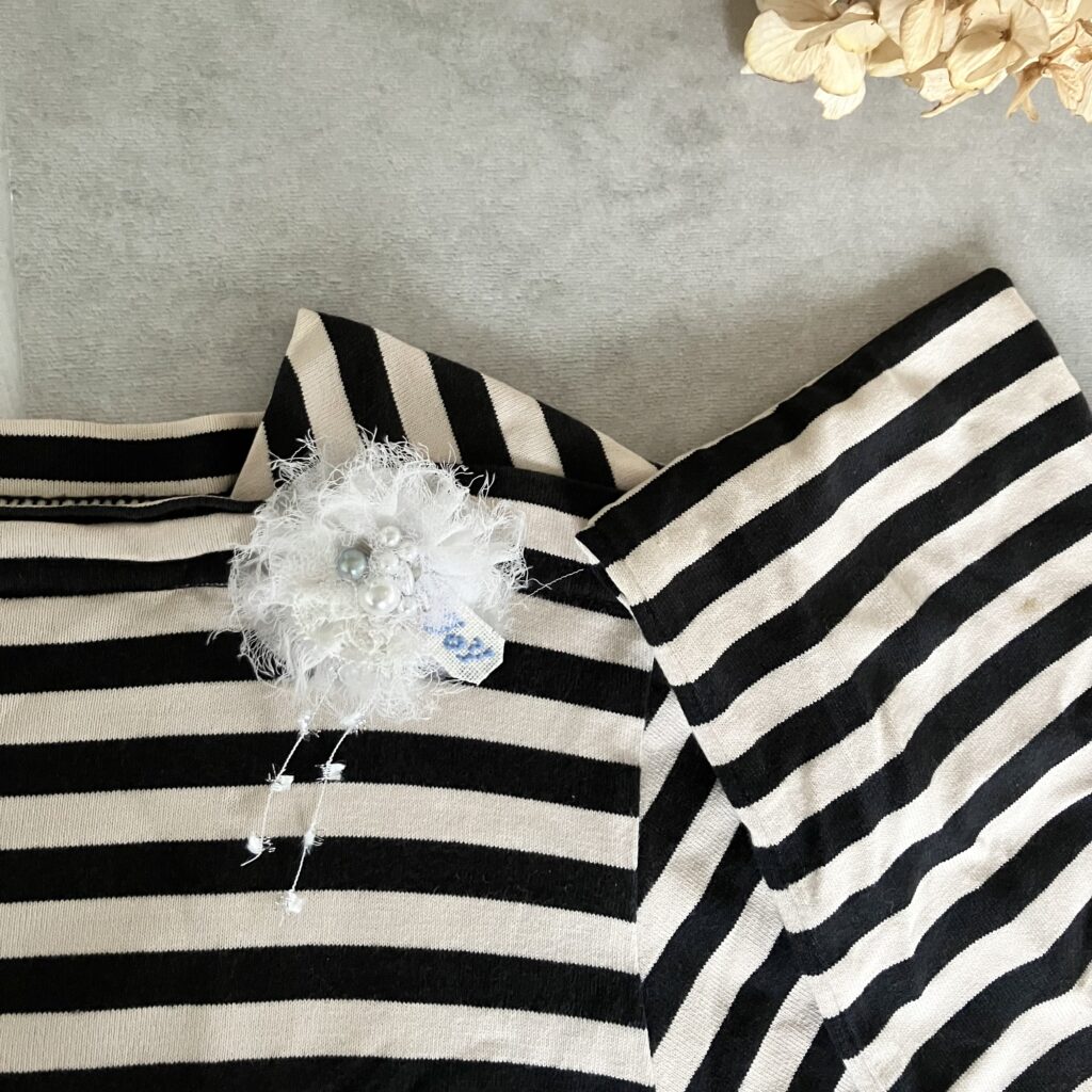写真のように、ボーダーなどのカジュアルな洋服に付けた場合でも、