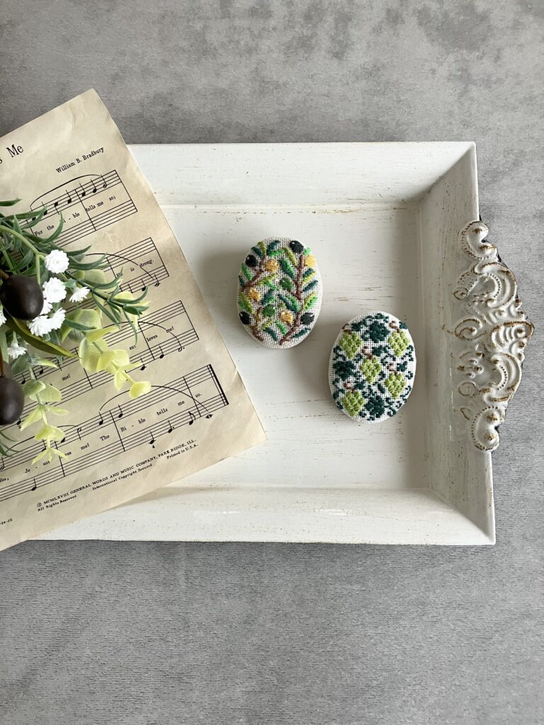 今回のブローチは配色に迷う場面が多く、決定までにたくさんの時間を費やしましたが、